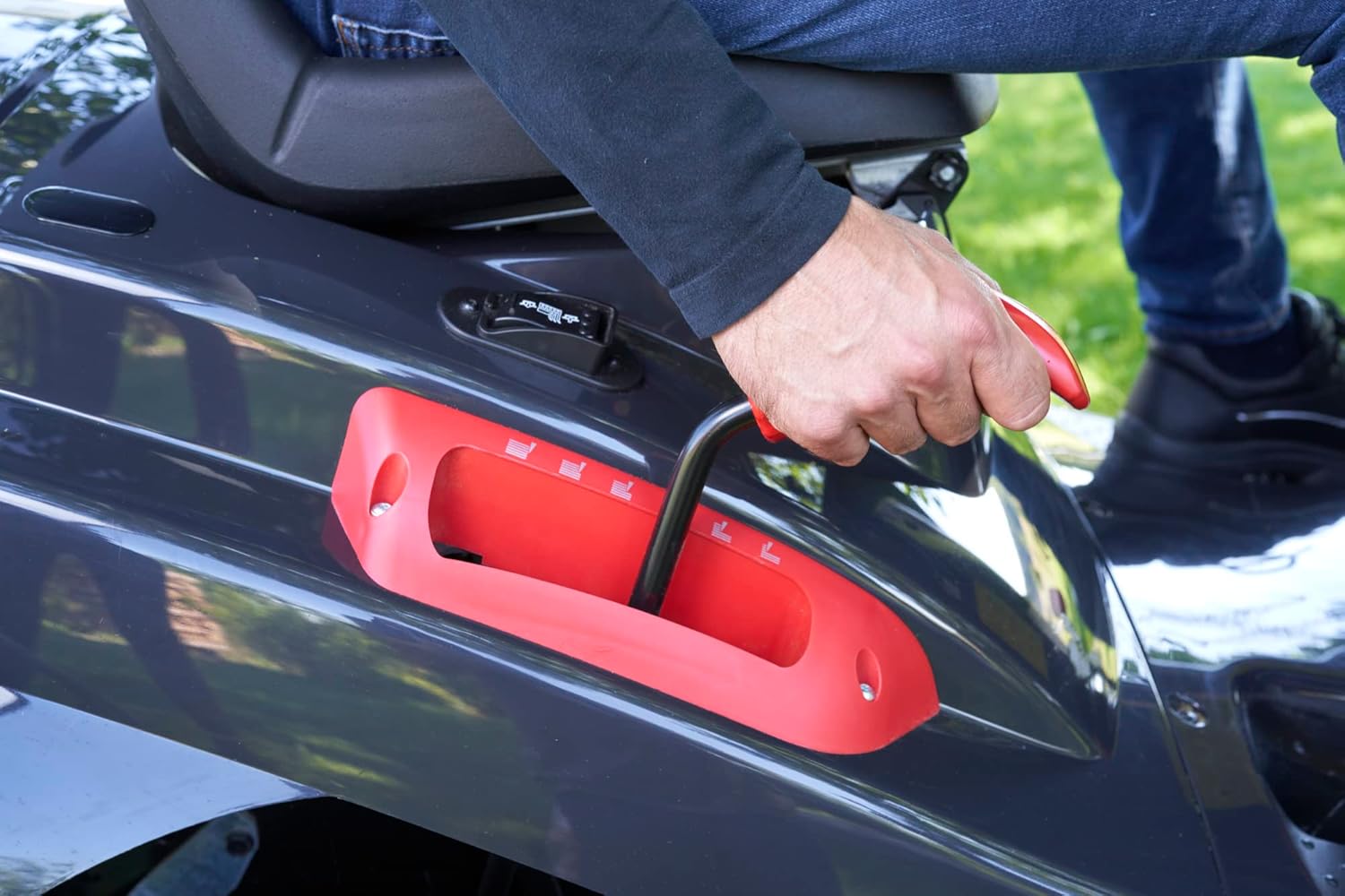 - Mulchfunktion über Mulchverschluß, praktisch am Mähdeck verstaubar