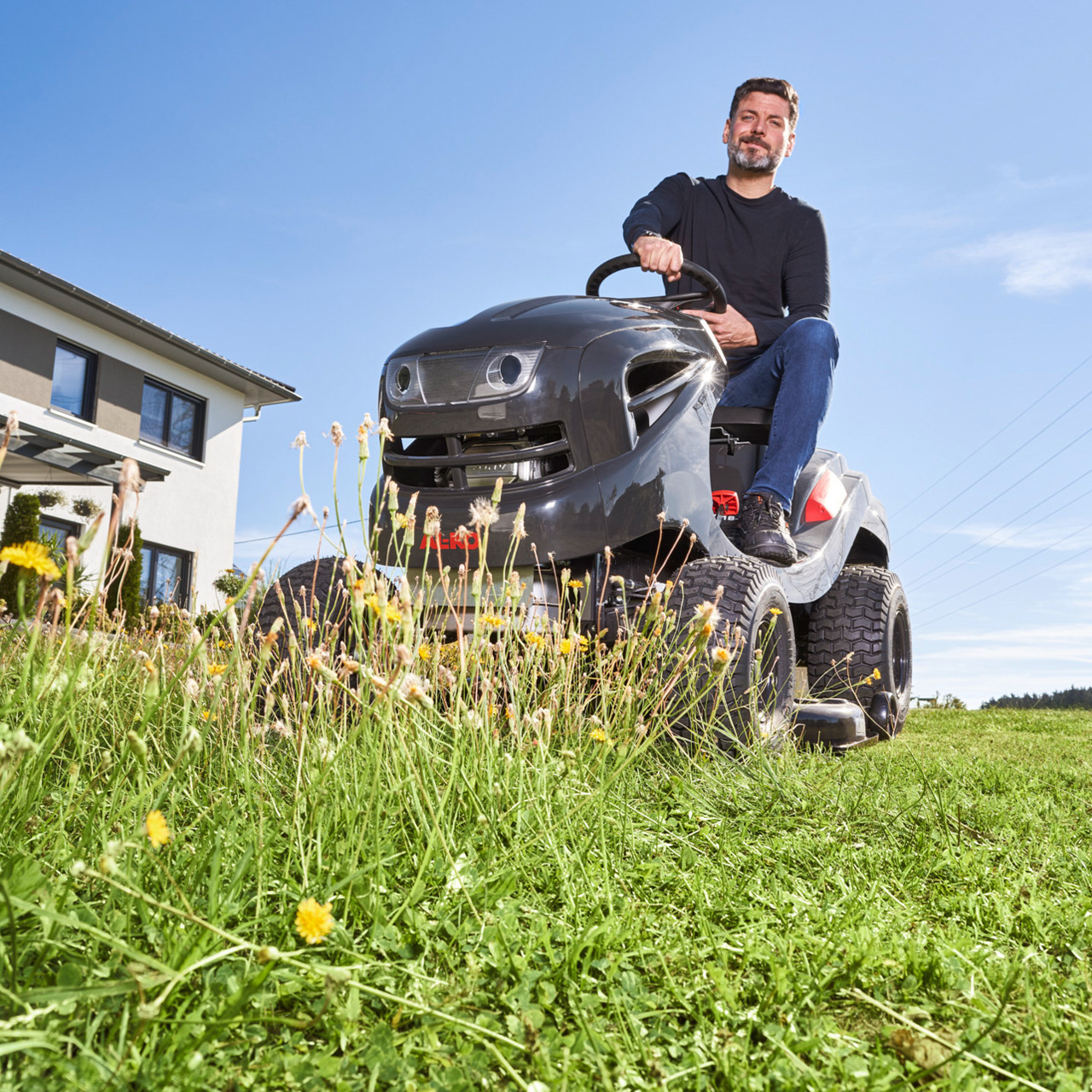 - Zuverlässiges 2-Messer Mähwerk, kugelgelagert für ruhigen Lauf