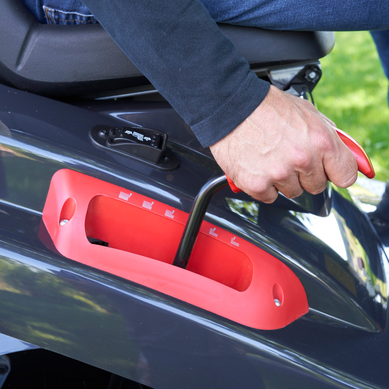- Mulchfunktion über Mulchverschluß, praktisch am Mähdeck verstaubar