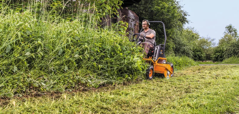 Der robuste Aufsitzschlegelmäher AS 1040 YAK 4WD ist für den harten Einsatz in unebenen, rauen und steilen Geländen gemacht. Extensive Grünflächenpflege, Aufwuchs bis zu 1,50 Meter, Gestrüpp und junge Aufwuchsschösslinge zerkleinert der Aufsitzer mühelos und zuverlässig. Somit ist dieser Schlegelmulcher für Profieinsätze bei Dienstleistern, Kommunen und Garten- und Landschaftsbauern geeignet. Wesentlich für die Geländegängigkeit ist der niedrige Schwerpunkt und die perfekte Gewichtsbalance von 50:50 auf der Vorder- und Hinterachse.