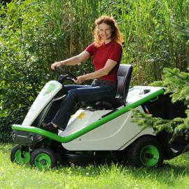 ![]() | Ideale Arbeitsbedingungen Der Fahrersitz bietet Rundsicht auf das Arbeitsumfeld. Längs einstellbarer ergonomischer Sitz. Ergonomische Bedienung: Schnitthöheneinstellung, Vorwärtsund Rückwärtspedale, Feststellbremse. |