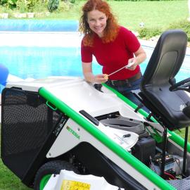 ![]() | Automatisch Blitzschnelle Fahrtrichtungsänderung und promptes Anhalten. Das über Pedale gesteuerte Hydrostatgetriebe ermöglicht jedes Manöver. |