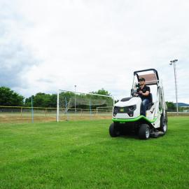 Die Leistungsfähigkeit des Mähwerks des Buffalo 124 ermöglicht Profis schnelles Arbeiten (bis 12 km/St. bei optimalen Mähbedingungen) und eine gesteigerte Produktivität (auch bei hohem oder feuchtem Gras und Regen).