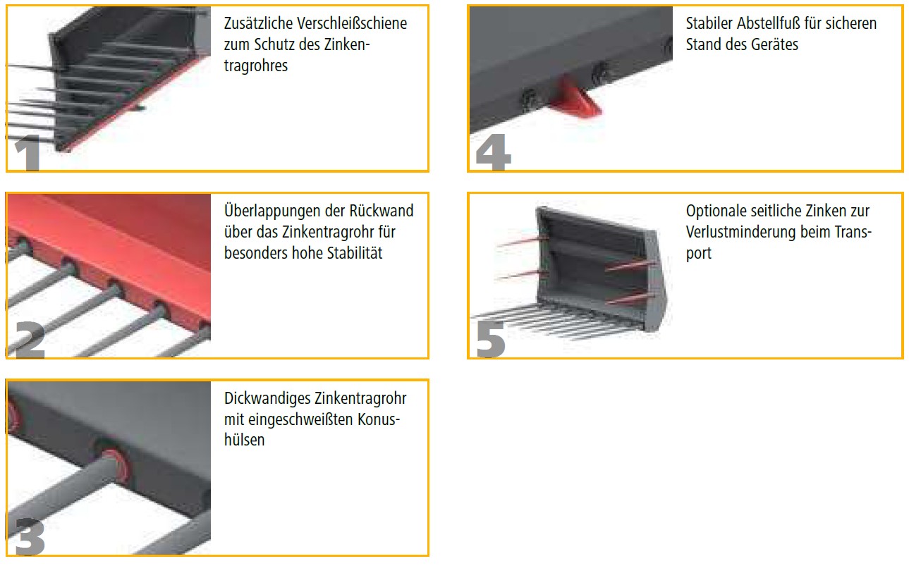 Dunggabeln werden ab Werk mit Qualitätszinken von SHW Friedrichstal geliefert.
