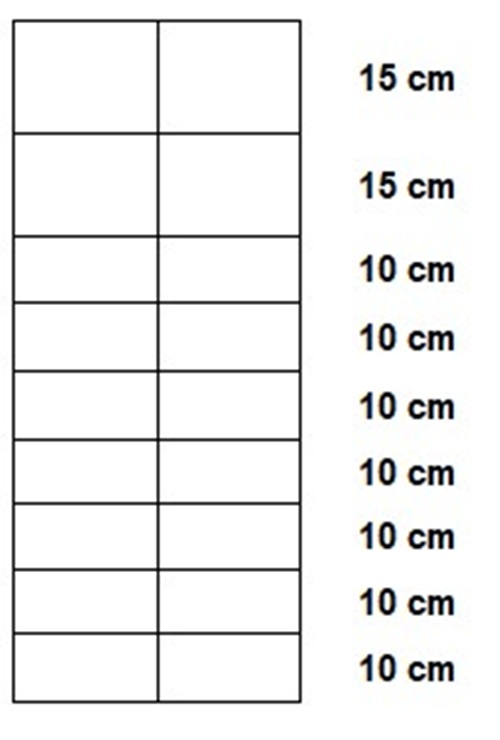 Maschen von unten nach oben: 7 Maschen 10 cm x 30 cm / 2 Maschen 15 cm x 30 cm